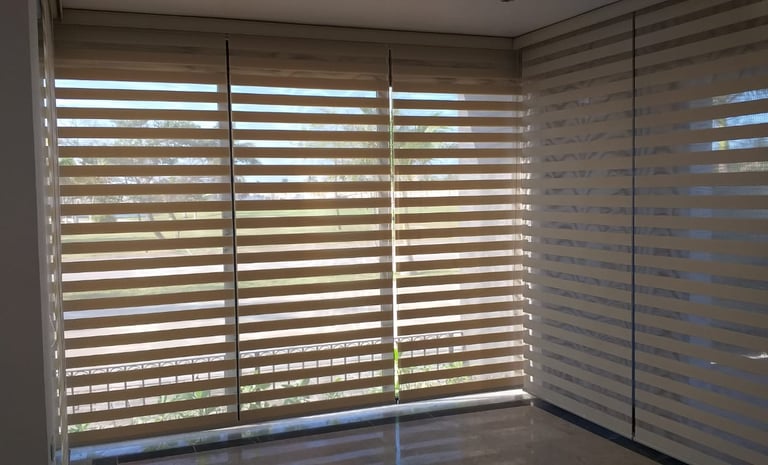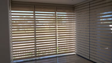 Una persiana muy original que permite regular el paso de la luz y la visibilidad, así como la privacidad en el área donde se coloque. Combina lo versátil de una cortina vertical con la elegancia de una cortina tradicional.